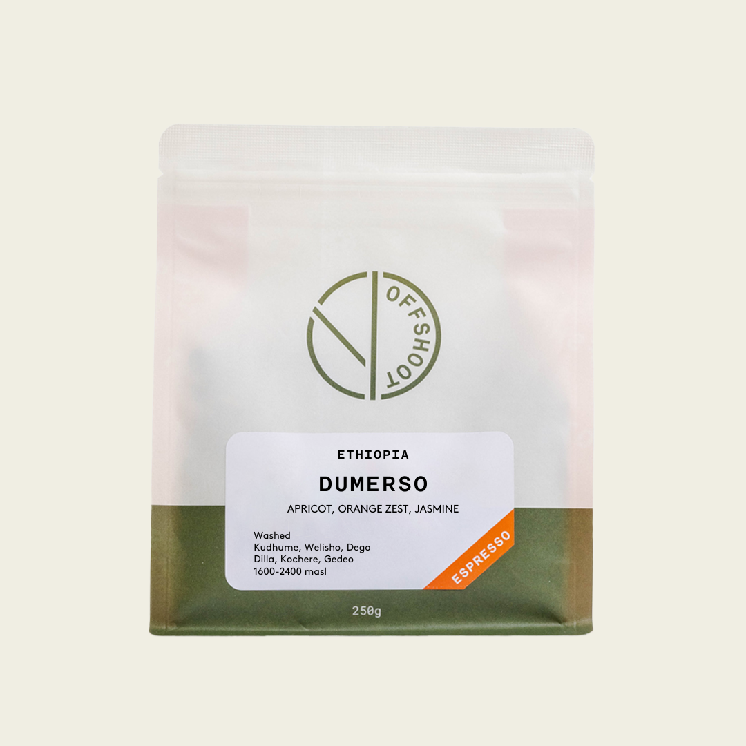 As an espresso, Dumerso shines with a lively yet balanced profile. Juicy apricot sweetness leads the way, followed by bright orange zest acidity and a delicate jasmine floral note that lifts the finish. The result is a clean, sweet espresso with excellent structure and a refined, aromatic aftertaste.