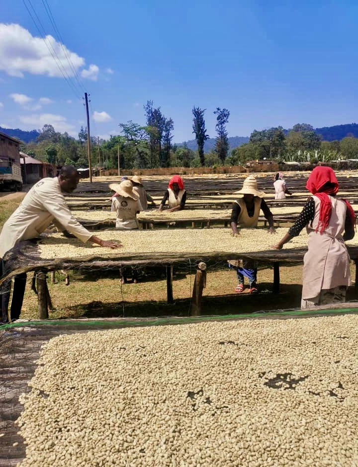 Only ripe cherries are delivered to the washing station, where they are carefully sorted, depulped, and fermented under water for 36 to 48 hours. Once fermentation is complete, the coffee is thoroughly washed and dried slowly on raised beds for up to two weeks, with constant monitoring and turning to ensure consistency and clarity.