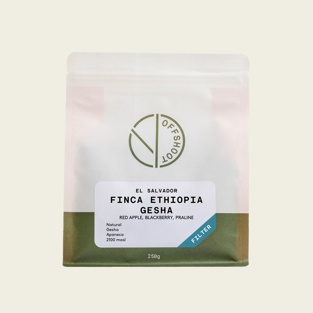 Located behind the Ilamatepec Volcano, the farm benefits from fertile volcanic soils and cool high altitude conditions that promote slow cherry maturation and excellent cup structure. With varieties like Gesha, SL28, Caturra and Bourbon also planted, Finca Ethiopia is dedicated to producing coffees that reflect both terroir and innovation.