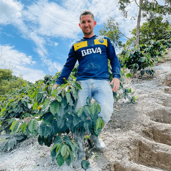 Jhonatan Gasca farms at Finca Bella Vista in Bruselas, Huila, continuing a deep family tradition of coffee growing while pushing firmly into the world of specialty coffee. His journey has been shaped by persistence, curiosity, and a desire to move beyond volume-driven production into quality-led farming. Through years of experimentation and learning, Jhonatan has become known for bold, modern flavour profiles and meticulous post-harvest work.