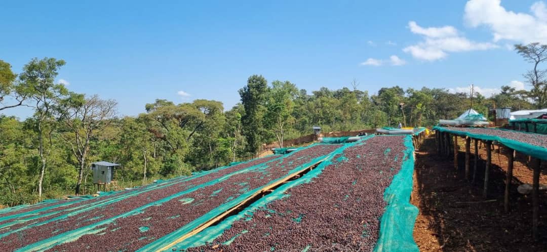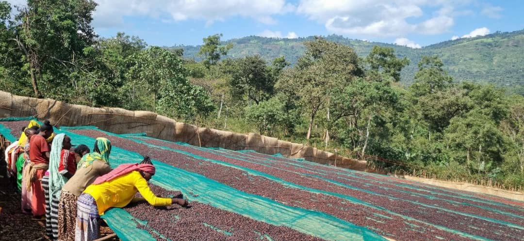 The site's natural allure is further enhanced by its diverse canopy of shade trees and the presence of various indigenous wildlife species. Cherries harvested from surrounding farms are transported to the Tadesse Desta wet/dry mill, spanning 2 hectares and situated along the banks of the Awata River. Here, locally sourced cherries undergo further processing to attain export-ready status, utilizing African drying beds where they are carefully dried for 20-30 days, adjusting as per prevailing weather conditions